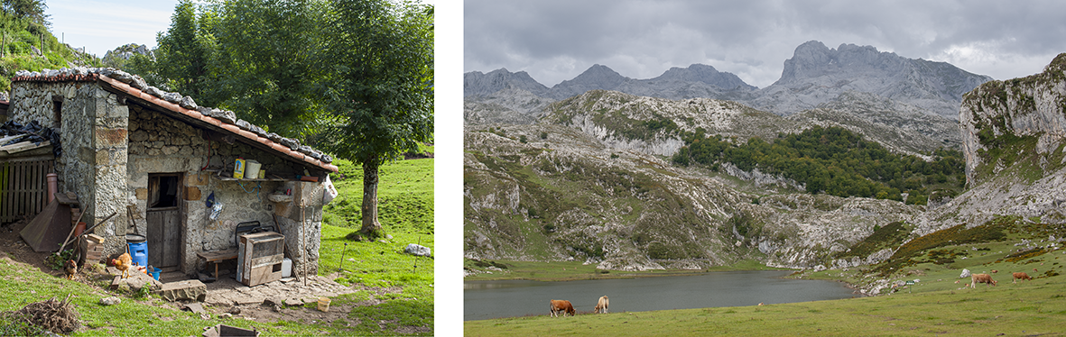 1. Geológico: El macizo calizo de los Picos de Europa determina las condiciones microbiológicas que hacen inevitable el azul en cualquier queso elaborado y madurado en su entorno. El Gamonéu comparte sustrato geológico con el Cabrales, el Picón Bejes-Tresviso y el Valdeón.