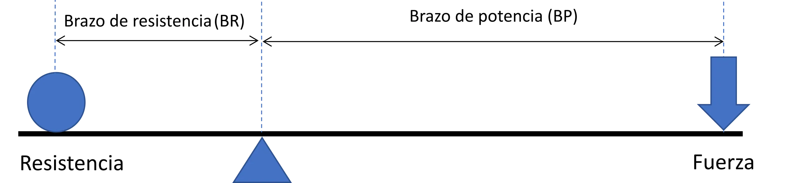 - \(d_r\) es la distancia desde el punto de apoyo hasta el punto donde se aplica la resistencia (BR: brazo de la resistencia).